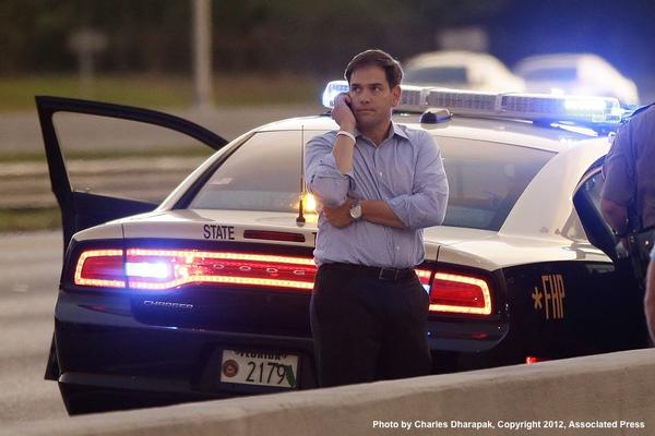 PHOTO Sen Marco Rubio on phone after Romney motorcade stopped. Daughter earlier involved in vehicle accident via @AP pic.twitter.com/kRIineSz