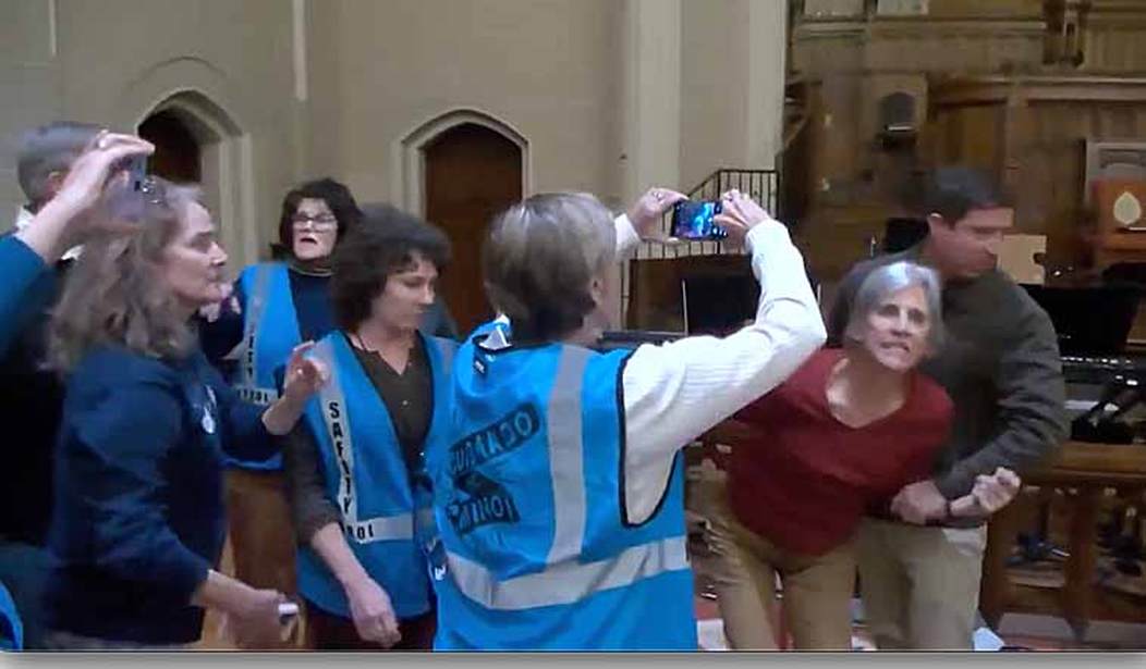 Again, we're not sure if this is the same church (it sure looks like it), but here is a bunch of boomer women in training to make noise and shoot video of other boomer women pretending to be detained by ICE agents.