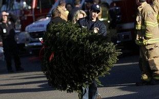 Sandy Hook FD now carrying Christmas trees to line the road leading to the school. #newtown