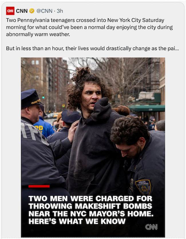 A post regarding the two individuals arrested for throwing homemade bombs outside of New York City Mayor Zohran Mamdani’s home failed to reflect the gravity of the incident thereby breaching the editorial standards we require for all our reporting. It has therefore been deleted.