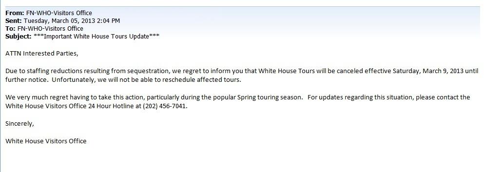 Wow. White House shuts down all public tours, blames #Sequester. pic.twitter.com/KedY8wmZ2M